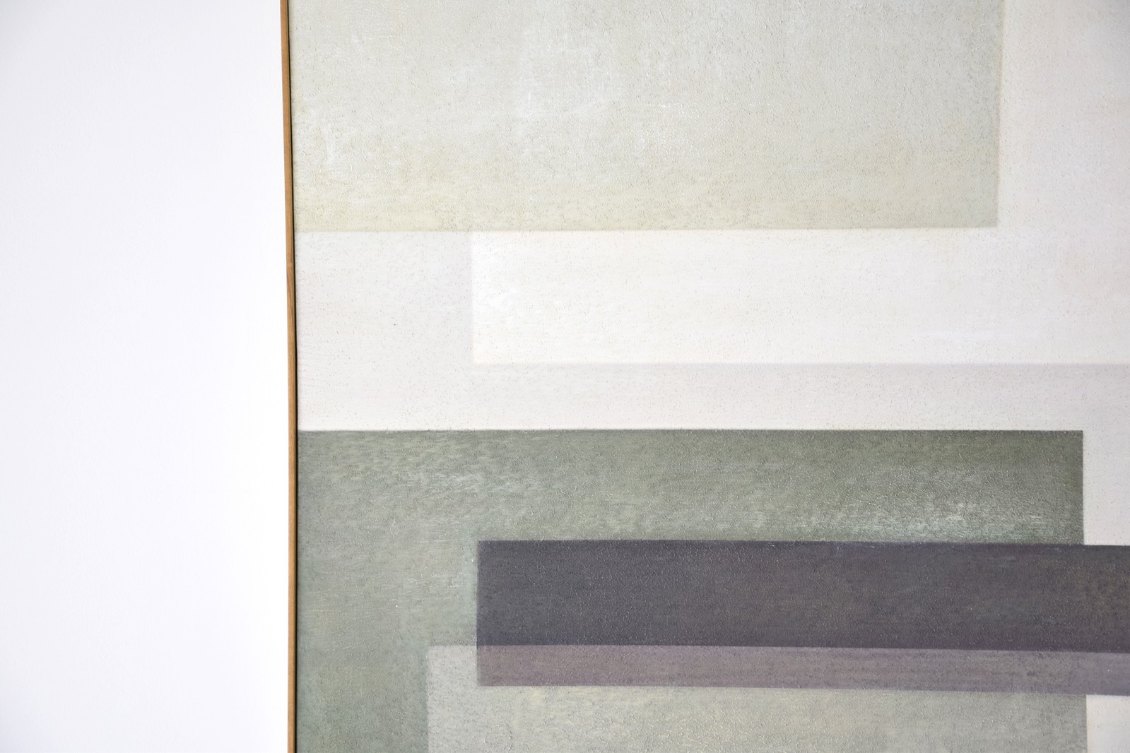 CUADRO SUPERPOSICIÓN EN VERDE N2. ACRÍLICO SOBRE LIENZO. PINTADO A MANO EN TONOS VERDES CREMA GRIS BLANCO Y NEGRO. MARCO EN ACABADO COLOR MADERA
