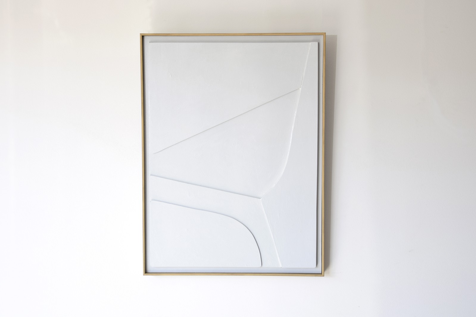 CUADRO REALIZADO SOBRE TABLERO DM . LA SUPERPOSICIÓN DE DISTINTOS ESPESORES GENERA UNA SUPERFICIE EN RELIVE CREANDO LUCES Y SOMBRAS QUE PERMITE ESTABLECER UN DIALOGO CON EL ESPACIO DEL QUE FORMA PARTE. SOBRE EL TABLERO ES APLICADO A MANO UN CABADO EN GRIS CLARO CON DISTINTAS TEXTURAS HACIENDO QUE CADA PIEZA SEA ÚNICA.