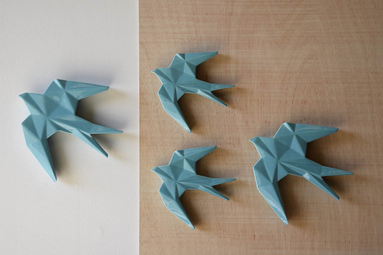 ANDURIÑA PARA COLGAR EN PARED REALIZADA EN CERÁMICA DE COLOR AZUL ACABADO BRILLO. SU PRODUCCIÓN ARTESANAL Y LA APLICACION TOTALMENTE A MANO DEL COLOR CONVIERTEN A CADA PIEZA EN UN ELEMENTO ÚNICO OBTENIENDO DISTINTOS MATICES DEL COLOR QUE APORTAN UN EFECTO SINGULAR A CADA ESPACIO.TAMAÑO GRANDE. LA TÉCNICA DE VIDRIADO ADMITE PEQUEÑAS VARIACIONES DE COLOR
