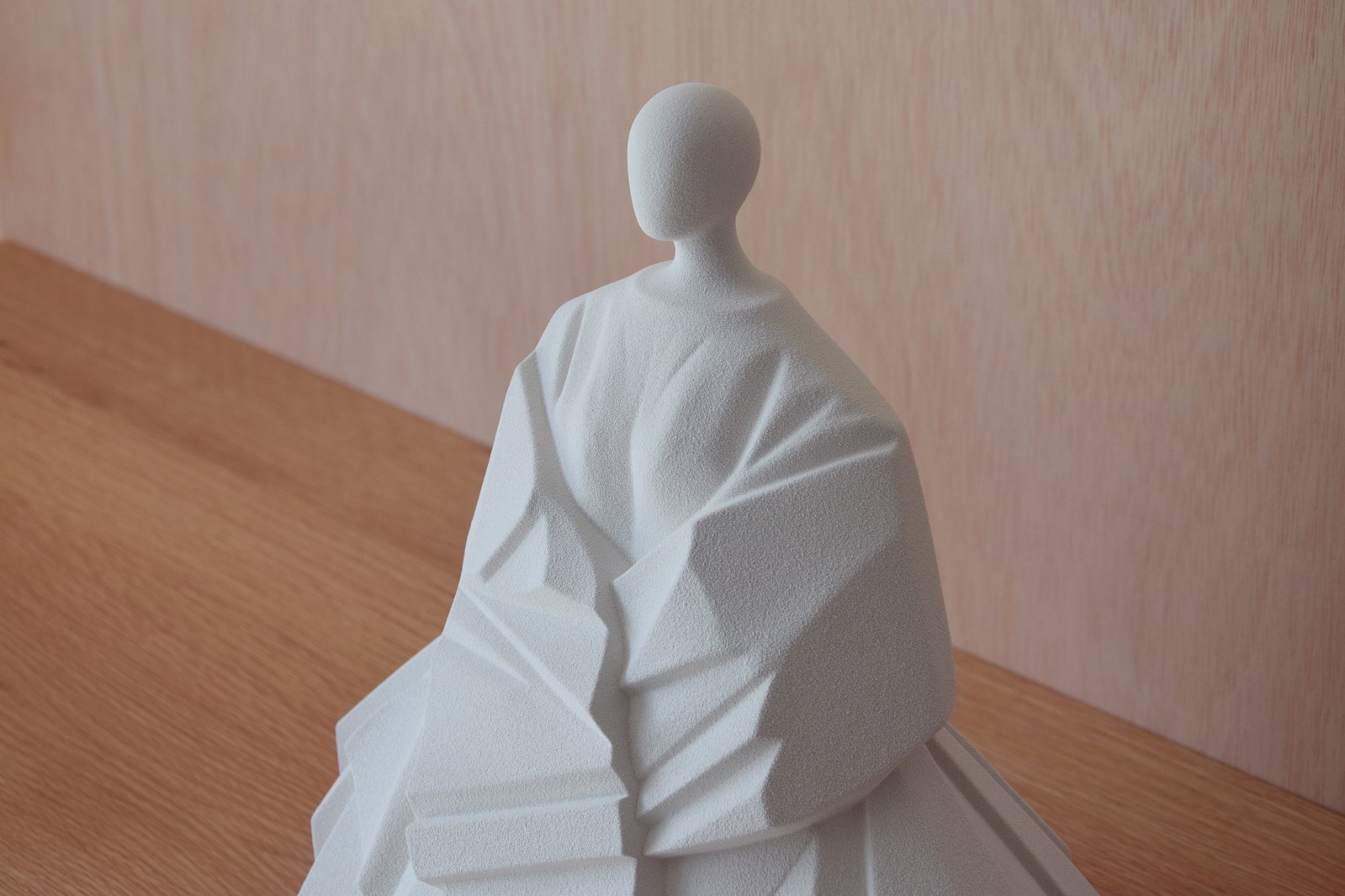FIGURA MUJER JAPONESA CON REPRESENTACIÓN CONCEPTUAL Y GEOMÉTRICA DE VESTIMENTA TRADICIONAL Y EXAGERACIÓN DE MANGAS. REALIZADA EN CERÁMICA COLOR BLANCO ROTO MATE Y ACABADO TEXTURA RUGOSO