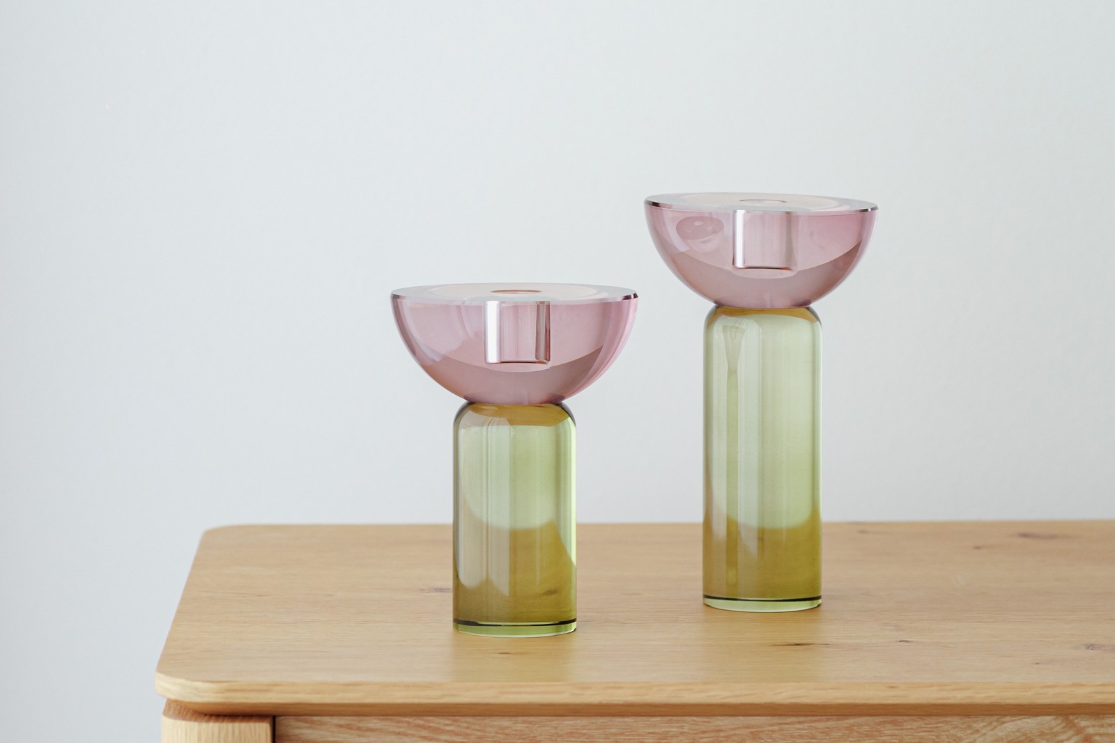 COLECCIÓN ULLA: CANDELABROS CRISTAL BURDEOS VERDE