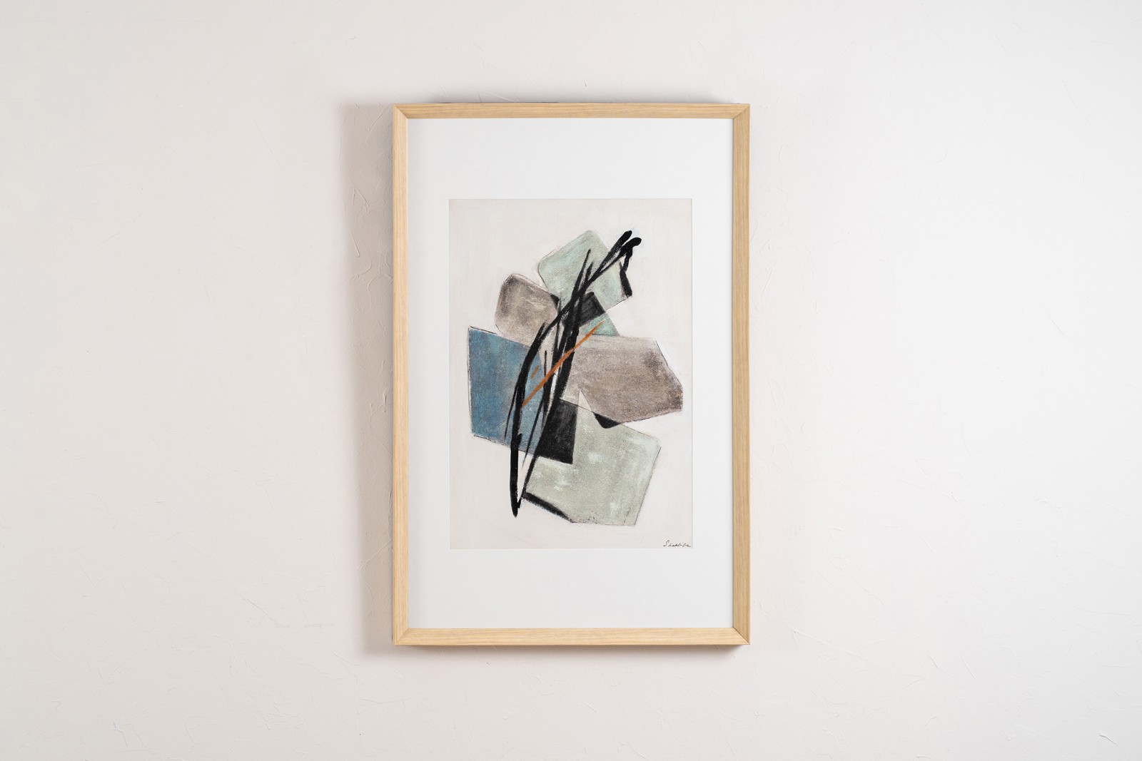 CUADRO ABSTRACTO CUBOS N1. PINTURA ABSTRACTA REALIZADA A MANO SOBRE LIENZO CON UNA COMPOSICIÓN EN CUBOS USANDO TONOS GRISES VERDES AZULES Y UN TOQUE DE NARANJA OSCURO. ENMARCADA EN CRISTAL Y CON MARCO EN COLOR MADERA NATURAL.