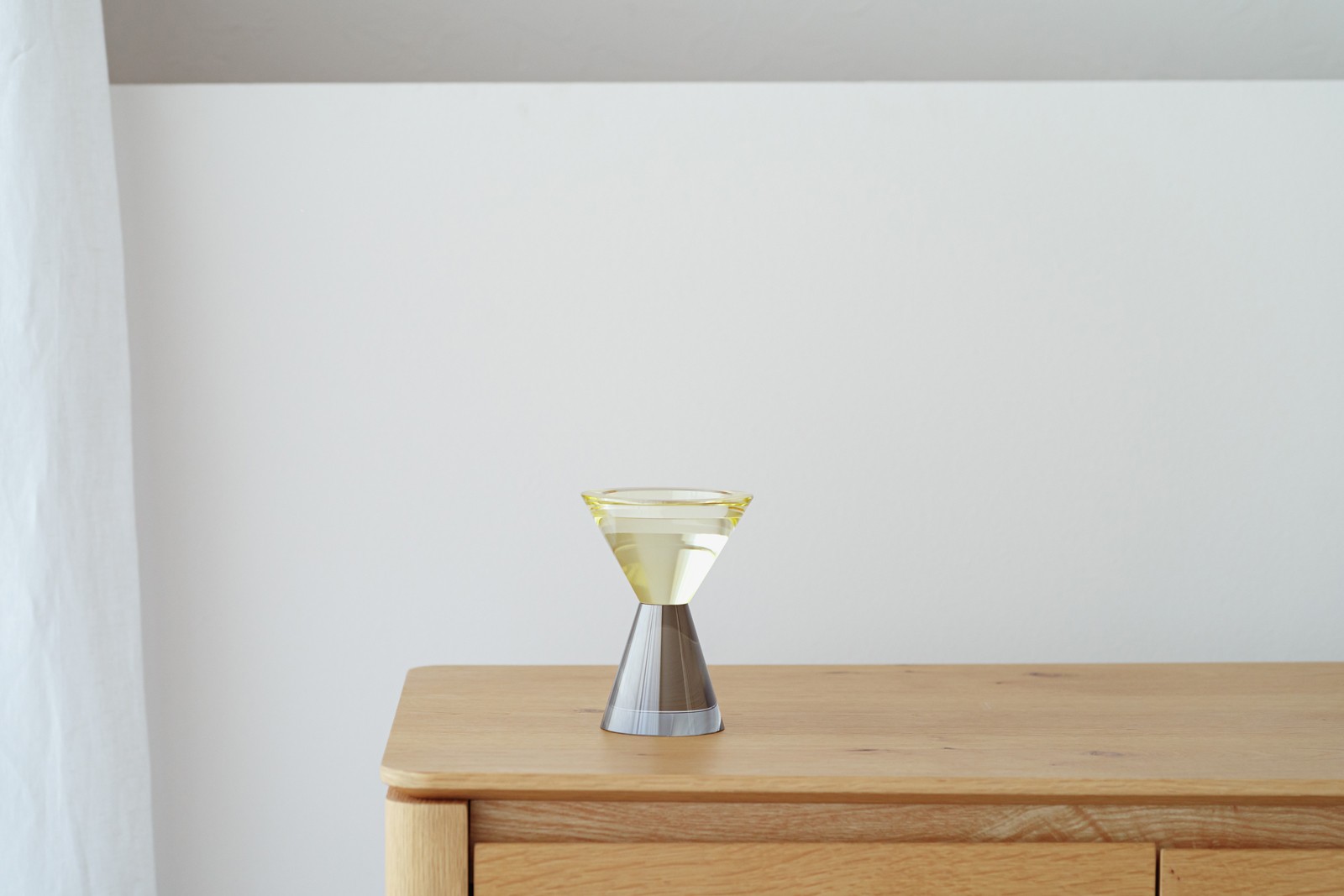 CANDELABRO VAL REALIZADO EN CRISTAL QUE COMBINA UN TONO GRIS AHUMADO EN LA BASE CON UN SUAVE TONO AMARILLO EN LA PARTE SUPERIOR. CADA COLOR ESTÁ PRESENTE EN UN VOLUMEN DANDO COMO REUSULTADO UNA PIEZA DE DECORACIÓN PERFECTA PARA LLENAR DE LUZ CUALQUIER ESTANCIA. TAMAÑO PEQUEÑO.PIEZAS EN CRISTAL PULIDO COLOREADO.