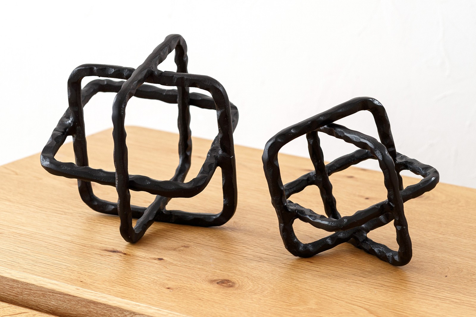 SET DE 2 PIEZAS DECORATIVAS REALIZADAS EN METAL SIMULANDO UNA CUERDA QUE SE ENROLLA FORMANDO UN CUBO. EL METAL ACABADO EN BRONCE OSCURO TIENE UN ACABADO IRREGULAR DANDO UN ASPECTO RUSTICO A LAS PIEZAS. OBJETOS SENCILLOS EN DOS TAMAÑOS CON UN VOLUMEN PERFECTO PARA COMPLEMENTAR UN SALÓN UNA ENTRADA O UN ESPACIO CON AIRE ATEMPORAL.