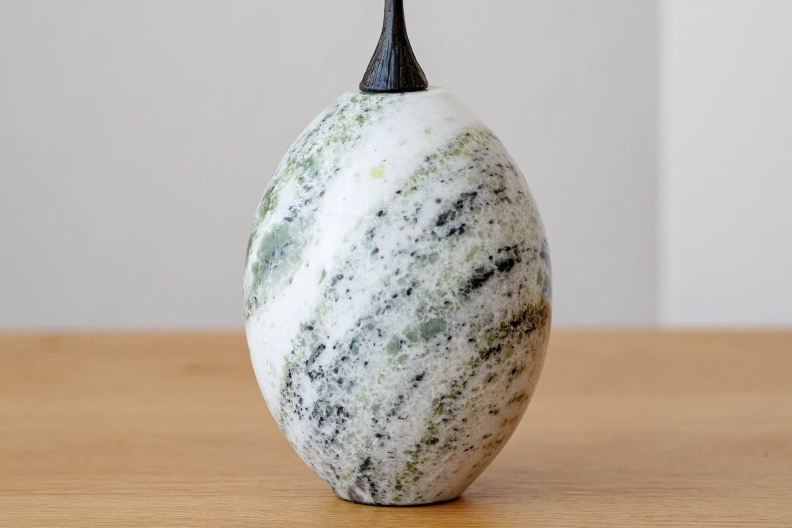 ESCULTURA REALIZADA EN MÁRMOL Y METAL. LA PIEZA EN MÁRMOL NATURAL DE COLOR VERDE VETEADO EN BLANCO Y GRIS SE COMBINA CON LA PARTE METÁLICA EN COLOR NEGRO CON TOQUES EN ORO VIEJO APLICADO MEDIANTE LA TÉCNICA DEL CEPILLADO CON ACABADO IRREGULAR. -AL TRATARSE DE PIEDRAS NATURALES Y ACABADOS ARTESANALES PUEDE HABER VARIACIÓN DE UNAS PIEZAS A OTRAS.-
