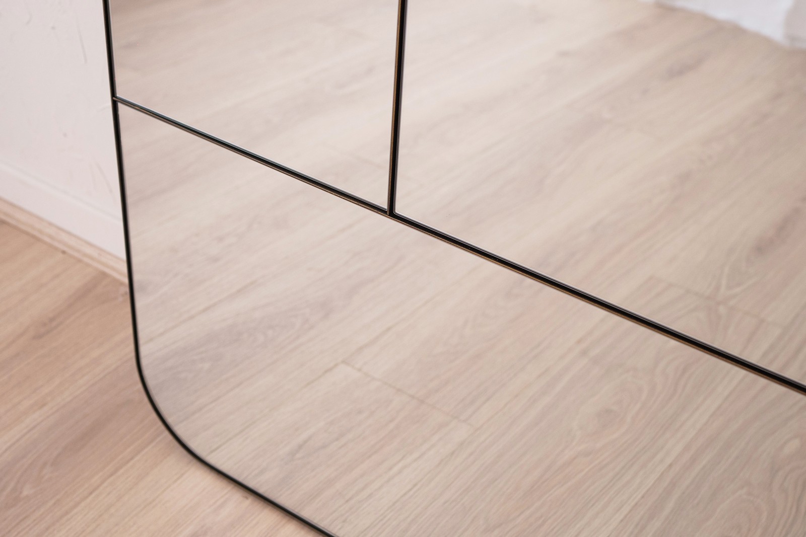 ESPEJO DECORATIVO DE SUELO CON UN DISEÑO RECTANGULAR DE ESQUINAS REDONDEADAS. COMBINA CUATRO PIEZAS RECTANGULARES DE ESPEJO DE DISTINTOS TAMAÑOS SEPARADAS POR EL MISMO PERFIL METÁLICO QUE FORMA EL MARCO. DISEÑO CONTEMPORÁNEO Y SENCILLO QUE APORTA UN TOQUE DECORATIVO A CUALQUIER RINCÓN. CUELGUE VERTICAL Y HORIZONTAL.