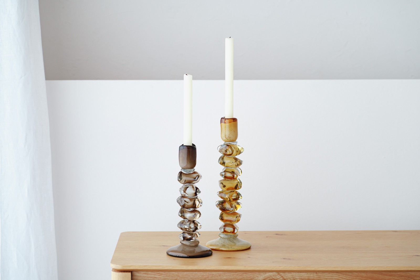 COLECCIÓN ALDÁN: CANDELABROS VIDRIO ÁMBAR VERDE