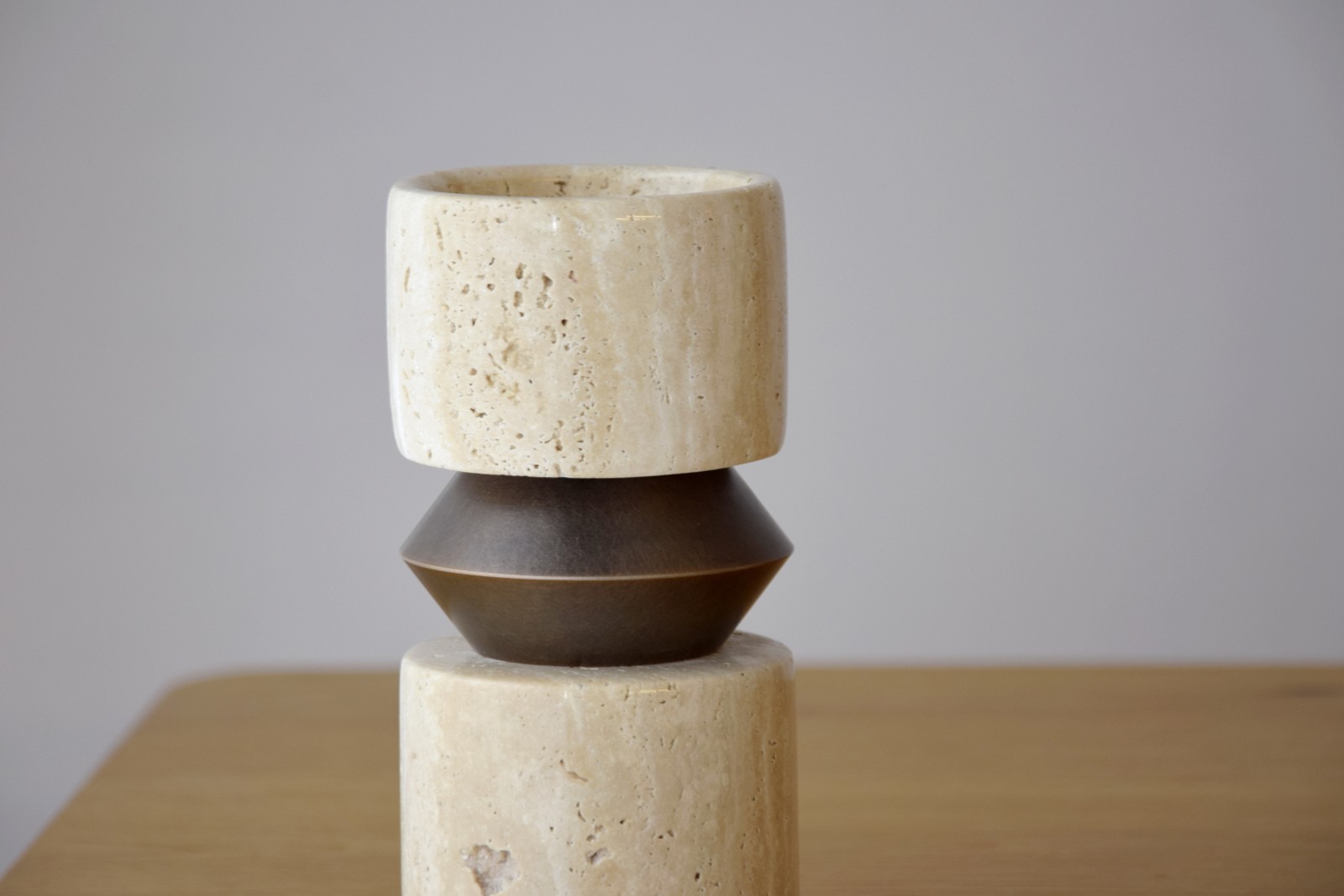 CANDELABRO FORMA N2.TRAVERTINO Y METAL