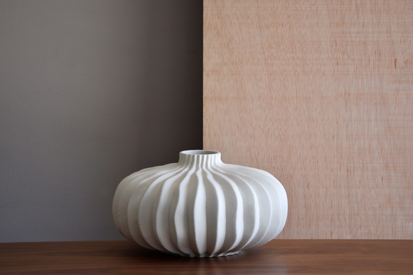 CENTRO REALIZADO EN CERÁMICA. DE LÍNEAS ORGÁNICAS Y REDONDEADAS ESTA PIEZA SE REALIZA EN BLANCO MATE CON UNA TEXTURA RUGOSA AL TACTO MUY NATURAL. DADO EL CARÁCTER ARTESANAL DE ESTAS PIEZAS Y LO ESPECIAL DE SU VIDRIADO ES MUY POSIBLE QUE HAYA VARIACIONES DE DE UNAS PIEZAS A OTRAS.