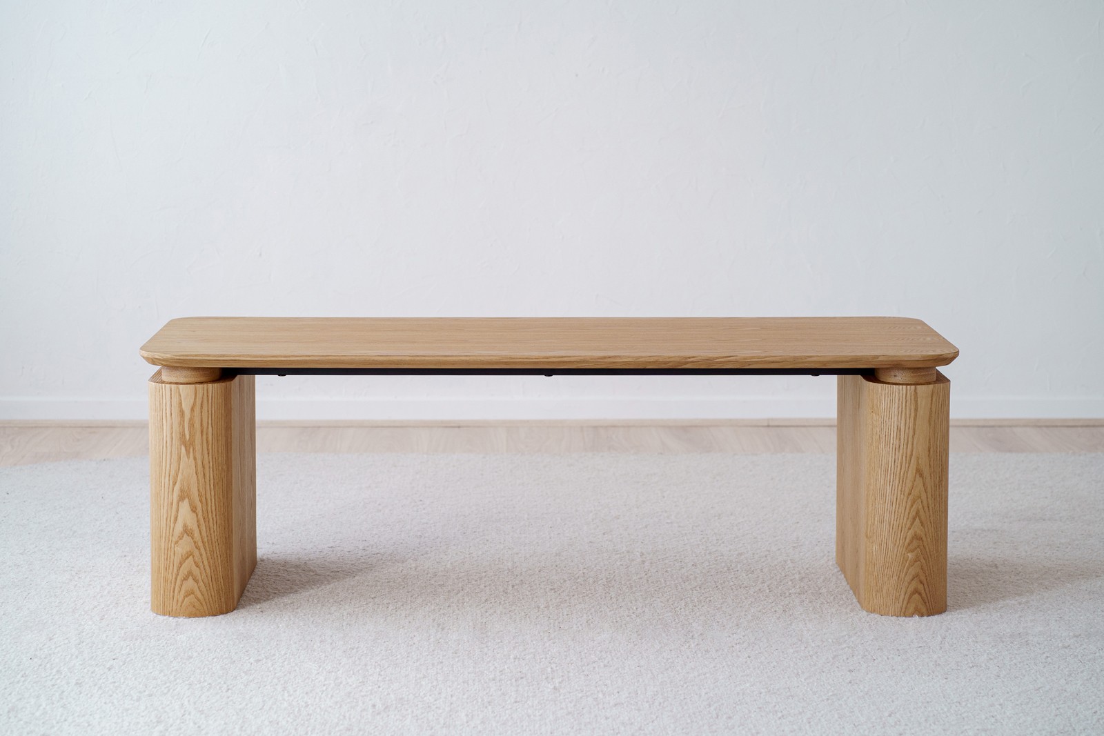 MESA DE CENTRO DE FORMA RECTANGULAR REALIZADA EN MDF ACABADO EN CHAPA DE MADERA DE FRESNO NATURAL. EL SOBRE SE CARACTERIZA POR LAS ESQUINAS REDONDEADAS Y POR LA FORMA DECRECIENTE DEL BORDE PERIMETRAL TRANSMITIENDO UNA ESTÉTICA LIGERA QUE CONTRASTA CON LA ROTUNDIDAD DE LAS DOS BASES OVALADAS. UN DISEÑO ESTUDIADO Y DELICADO QUE SE PERCIBE EN LOS DETALLES. ESTA MESA PUEDE FORMAR CONJUNTO CON OTRA DE FORMA CUADRADA Y ACABADO CERÁMICO DE MENOR ALTURA LO QUE PERMITE CREAR UN CONJUNTO DE FORMAS. TONOS Y TEXTURAS NATURALES COMBIERTEN A ESTA PROPUESTA EN UNA OPCIÓN PERFECTA DE DISEÑO ATEMPORAL Y EN CALMAL. LOS TONOS Y DIBUJOS DE LOS MATERAILES USADOS PUEDEN VARIAR DE UNA PIEZA A OTRA.